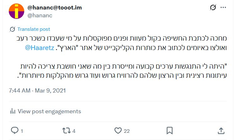 "היתה לי התנגשות ערכים קבועה ומייסרת בין מה שאני חושבת צריכה להיות עיתונות רצינית ובין הרצון שלהם להרוויח גרוש ועוד גרוש מהקלקות מיותרות".